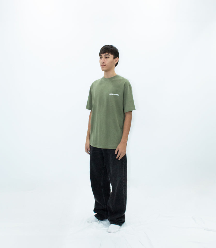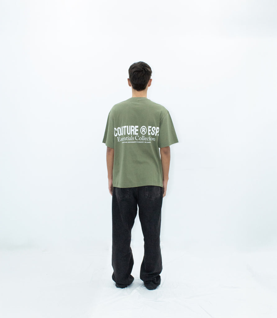 Camiseta de cuello redondo de corte oversize. Logotipo de Couture Studios serigrafiado en la parte delantera y frase “ESSENTIALS COLLECTION” serigrafiada en la espalda. Camiseta perfecta para cualquier momento y ocasión, una pieza imprescindible en el día a día. Camiseta 100% algodón orgánico de 200 g/m2, diseñada en Canarias, fabricada en Grecia.